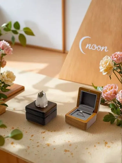 Meet the wooden cat wedding ring box,he say it"Would you marry me?"